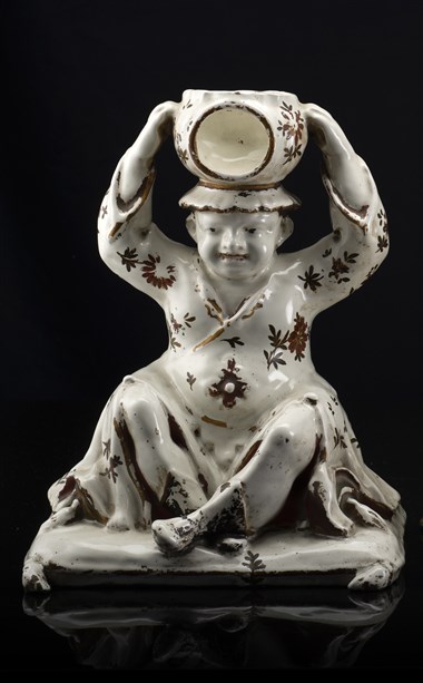 Felice Clerici manufacture, Milan, 1750 ca. A pair of majolica magot figures (h. cm 34 ca.) (restorations)