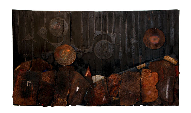 CRIPPA Roberto Monza 1921 - Bresso 1972 Remember the Alamo 1824, 1960 sughero e pittura su tavola, cm. 111 x 188 Firma, titolo 'Crippa, Remember the Alamo 1824' (al retro) Autentica del figlio dell'artista Roberto Crippa J. su fotografia