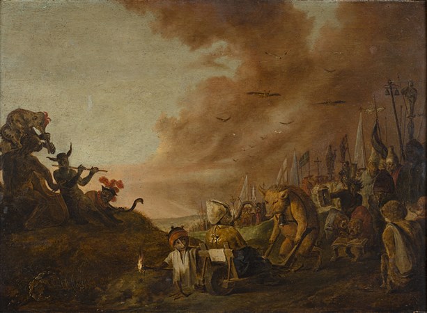 Cornelis Saftleven Scena satirica sulle autorità della Chiesa cattolica Olio su