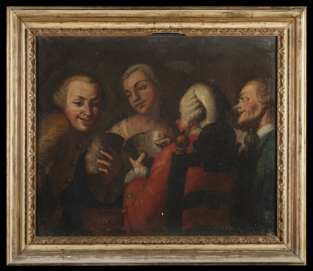 Scuola napoletana del secolo XVIII Il gioco delle carte Olio su tela cm 63x76,
