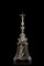 Candeliere in legno intagliato e argentato a volute fogliate, poggiante su base