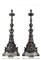 Coppia di importanti torciere in bronzo con fusto decorato a figure alate, anim