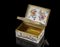 German manufacture, late 18th century. A porcelain snuff-box with gilt metal mounts (cm 7,5x4x6) (defects and losses)