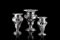 Gruppo di tre vasi portafiori in argento in stile veneto con corpi incisi a fio