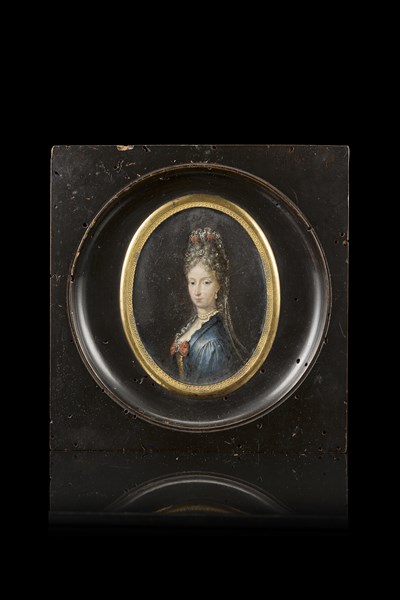 Scuola del secolo XVIII "Ritratto di nobildonna della famiglia Livizzani" minia