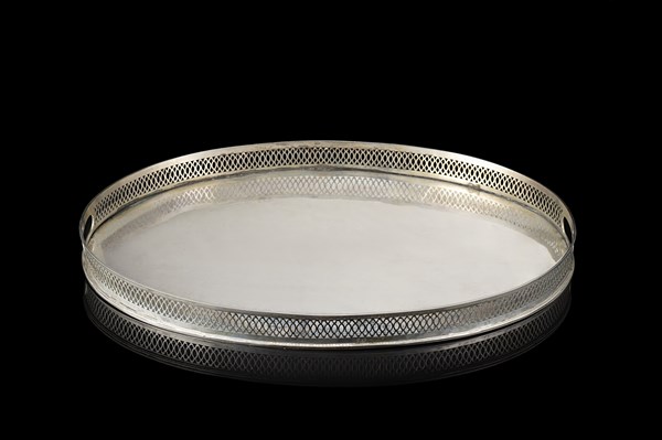 Vassoio in argento a corpo liscio decorato con ringhiera traforata. Regno Lomba