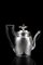 Teiera in argento a corpo liscio con coperchio sormontato da aquila ad ali spie