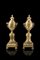 Coppia di vasi a candeliere in bronzo dorato decorati a festoni e fiocchi, basi squadrate terminanti a piedini torniti (h. cm 24) (difetti)