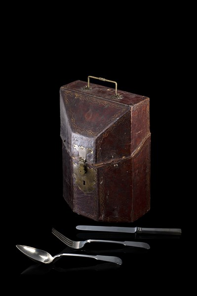 A silver cutlery set. End of the 18th Century. In case (g 1300 ca.) (minor defects)