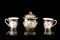 Sèvres manufacture, 19th century. A part of a polychrome porcelain service comprising of two cups and a sugar bowl with cover. Marks at the base (minor defects)