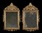 Coppia di specchiere in legno intagliato e dorato con cimase scolpite a volute