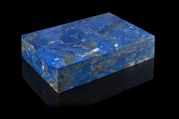 Scatola portasigarette lastronata in lapislazzuli con ghiera in argento dorato