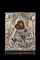 Icona ad olio su tavola raffigurante Madonna con Bambino, riza in argento dorat