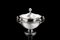 Zuppiera biansata in argento a corpo liscio di forma circolare con coperchio ci