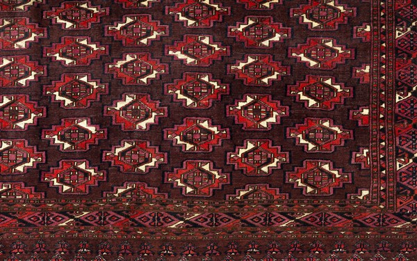 Tappeto Tchuval Sarik, Turkestan occidentale, fine secolo XIX. Decoro con Gul s