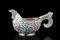 Kovsh in argento smaltato a fondo verde e azzurro con decoro floreale. Marchi di imitazione russa (h. cm 7) (g 110 ca.) (difetti)