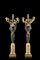 Coppia di candelieri a cinque fiamme in bronzo brunito e dorato, fusto a figura femminile alata che sorregge un cesto di frutta con porta candele di forma mossa. Basi a mezza colonna (h. cm 77) (difetti)