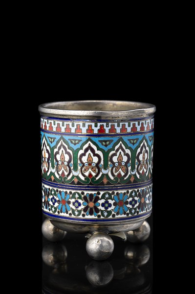A silver enamelled glass. Spurious marks of Moscow, 1876, silversmith Pavel Ovchinnikov (g 100 ca.) (lievi difetti)