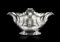 Salsiera biansata in argento a corpo costolato e con profili sagomati. Anse sca