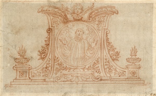 Scuola del secolo XVII Studio per cimasa con santo Matita rossa su carta mm 14