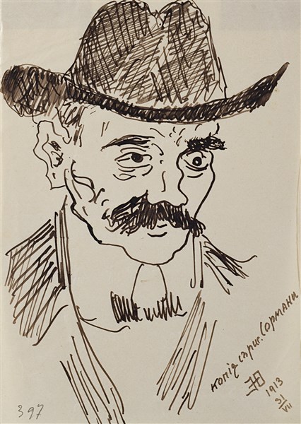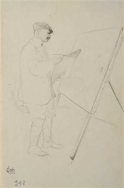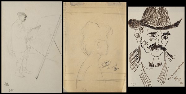 Lotto composto da tre disegni: Louis Livet (secolo XX) Autoritratto mentre dip