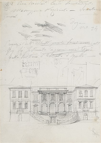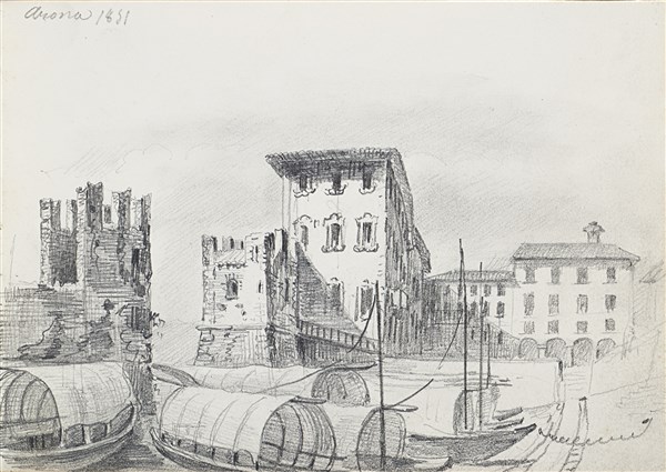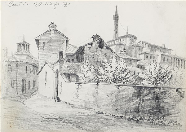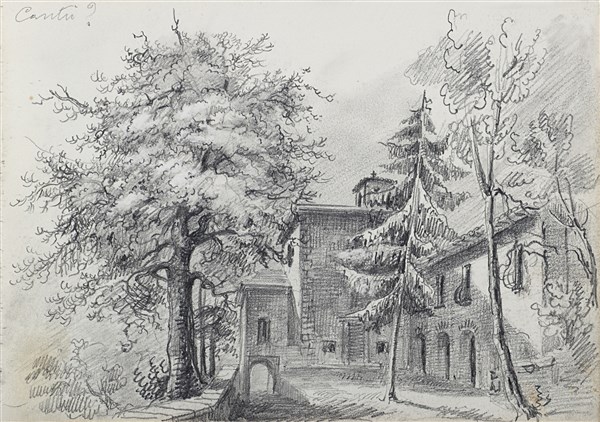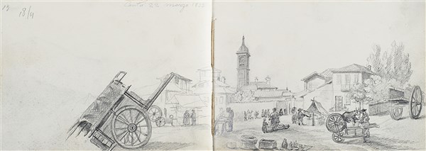 Alfonso Garavaglio (?) Small album of black chalk sketches depicting different places, including Lyon and Cantù, composed of 31 drawn pages (13.5x18.5 cm). Titled on the cover (defects)