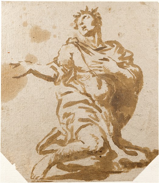 Artista del secolo XVII Figura maschile inginocchiata Pennello e inchiostro br