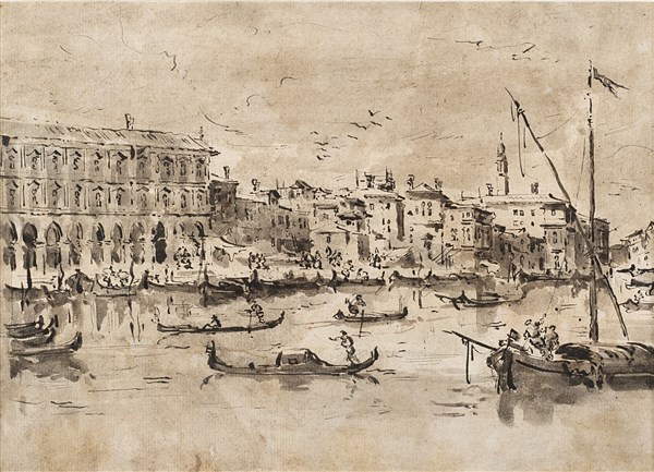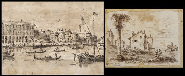 Seguace di Francesco Guardi del secolo XIX Veduta di Venezia Penna e inchiostr