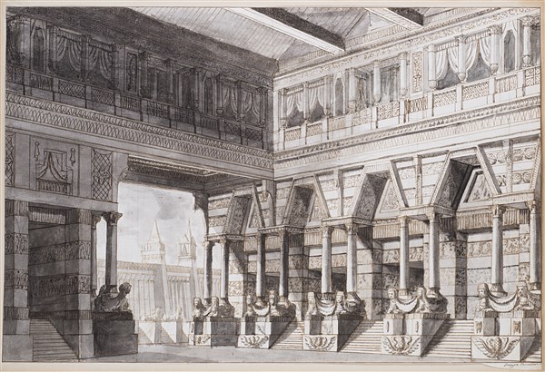 Giuseppe Cavallotti Scenografia Egizia con Sfingi Penna e inchiostro bruno acque