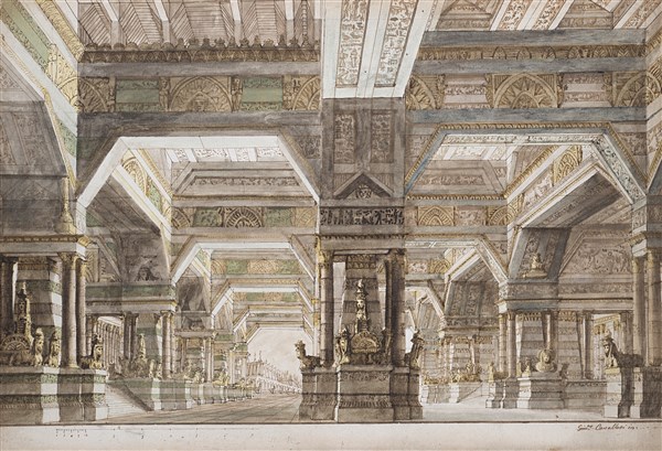 Giuseppe Cavallotti Prospettiva Egizia con colonnato Penna, inchiostro bruno e a