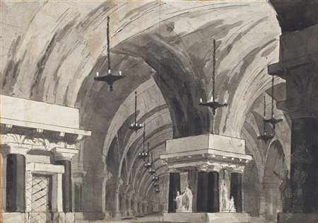 Alessandro Sanquirico (attr.) Scenografia Penna e inchiostro nero acquerellato