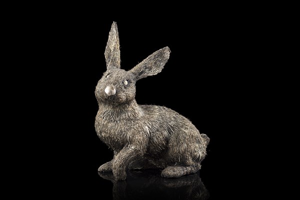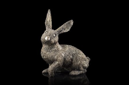 Mario Buccellati (attr.) Figura di lepre in argento con lavorazione a pelo in so