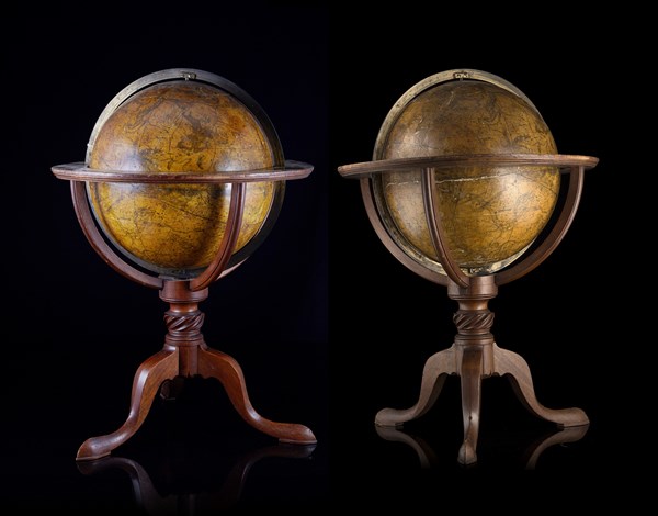 John Cary (1754 - 1835) William Cary (1759 - 1825). Terrestrial globe and celestial globe (h. cm 64) (major defects)