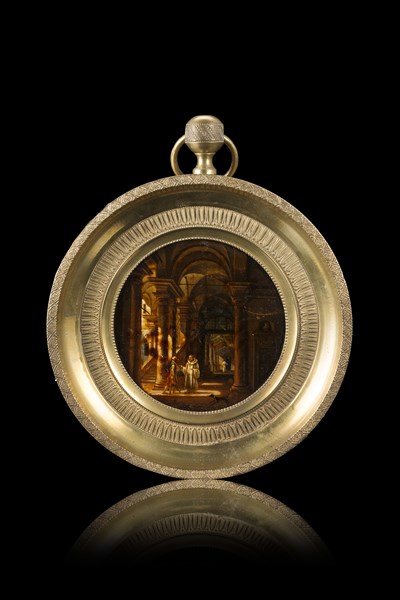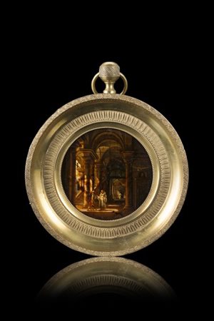 (attr.) Fixè raffigurante La guarigione dell'infermo. In cornice in bronzo dorato a palmette (d. cm 8,5) (difetti)