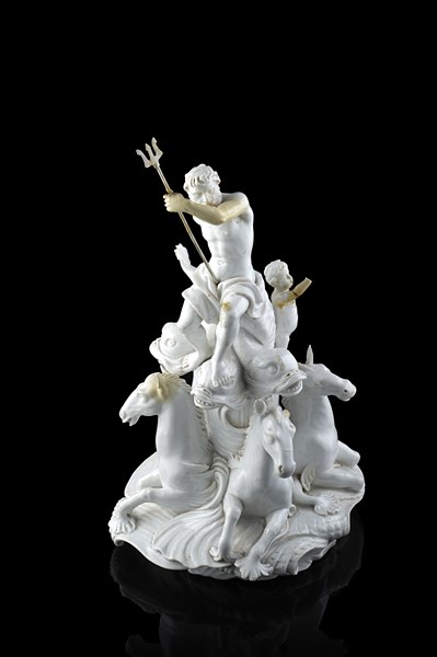 Manifattura di Ginori, secolo XVIII "Trionfo di Nettuno" gruppo in porcellana (h. cm 27) (mancanze e restauri)