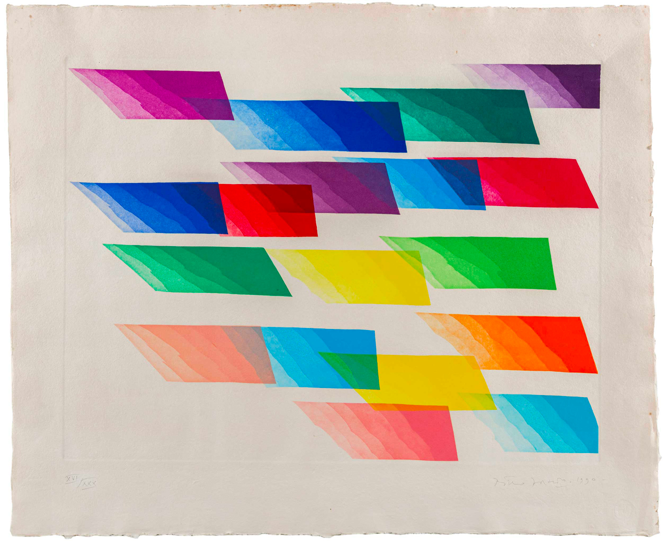 PIERO DORAZIO(1927 - 2005)Color fax1990Acquatinta a colori su carta, es. XVI/XXX59 x 79 cm (lastra)78 x 95 cm (foglio)Firmata e datata a matita in basso a destra, numerata in basso a sinistraPROVENIENZA:Collezione privata, Milano