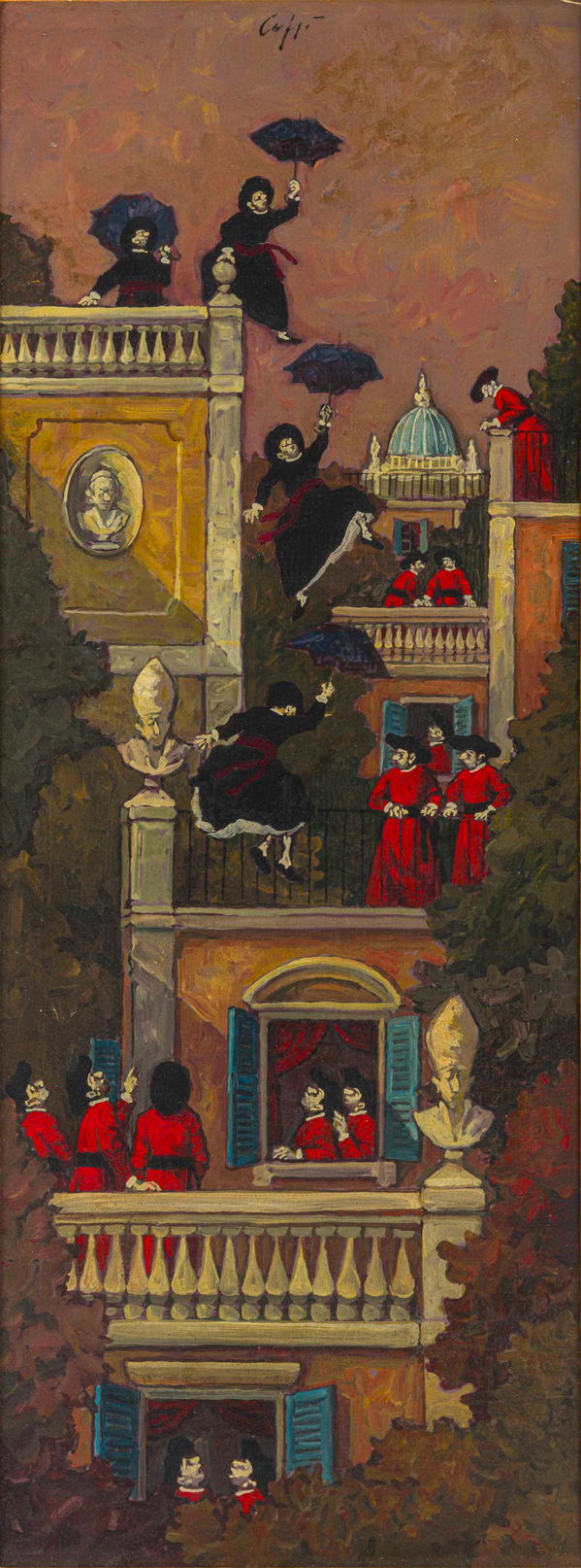 NINO CAFF»(1908 - 1975)PretiniOlio su tavola50 x 19 cmFirmato in alto nel centroPROVENIENZA:Collezione privata, Milano