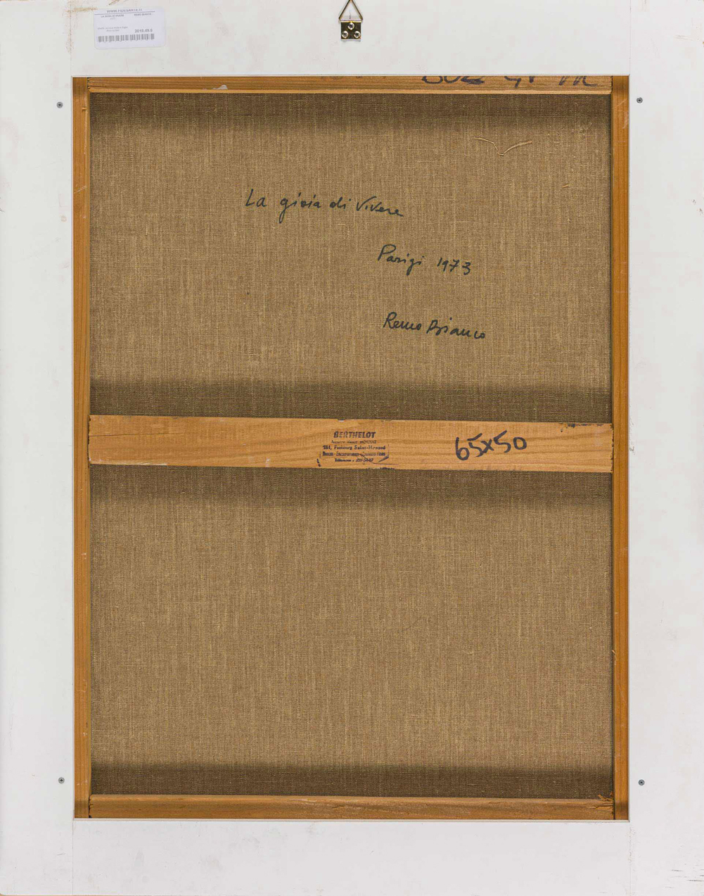 REMO BIANCO(1922 - 1988)La gioia di vivere1973Tecnica mista, pennarello, matita e foglia d'oro su pittura rossa su tela65 x 50 cmFirma, titolo e data al retroOpera accompagnata da certificato di autenticit‡ e archiviazione rilasciato dalla Fondazione Remo Bianco, MilanoPROVENIENZA:Collezione privata, MilanoCollezione privata, PaviaESPOSIZIONI:10 maggio - 10 giugno 1979, 'Remo Bianco. La joie de vivre', Galerie Lara Vincy, ParigiBIBLIOGRAFIA:AA. VV., 'Remo Bianco. La joie de vivre', Galerie Lara Vincy, Parigi, 1979 (ill.)