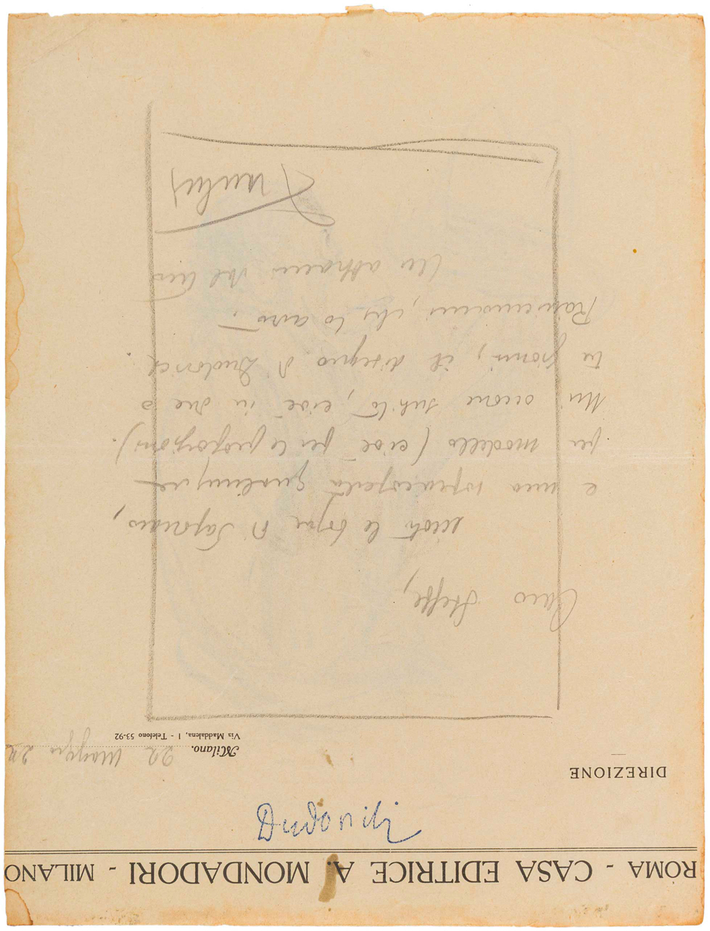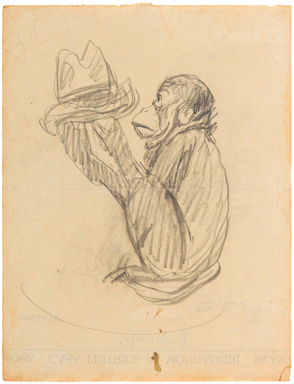 MARCELLO DUDOVICH(1892 - 1962)Lotto multiploLotto composto da 4 opere: Studio per manifesto della Rinascente 'Articoli da viaggio'Anni '20Matita su carta18,5 x 13,5 c. cm Firma al retroBIBLIOGRAFIA: AA. VV., 'Marcello Dudovich 1878-1962: 100 bozzetti e manifesti per la Rinascenete', Fabbri Editori, Milano, 1985, p.45Bozzetto per copertina della rivista 'La Lettura'Anni '20Matita su carta18,5 x 15 cm Firma al retroStudio per manifesto per 'Il vero Borsalino'1921Matita su carta da lettere della Mondadori27 x 20,5 cm Firma al retroBIBLIOGRAFIA: R. Curci, 'Marcello Dudovich. Oltre il Manifesto', Edizioni Charta, Padova, 2002, p. 212Studio per pubblicit‡ per Crociera della nave Italia o per la nave RomaAnni '20 e '30Matita su carta27 x 20 cm Firma al retroTutte le opere sono accompagnate da autentica su fotocopia rilasciata da Bagatti Antichit‡, MilanoSi ringrazia l'Archivio Storico di Marcello Dudovich per aver confermato l'autenticit‡ delle operePROVENIENZA:Studio dell'artista, MilanoBagatti Antichit‡, MilanoCollezione privata, Milano