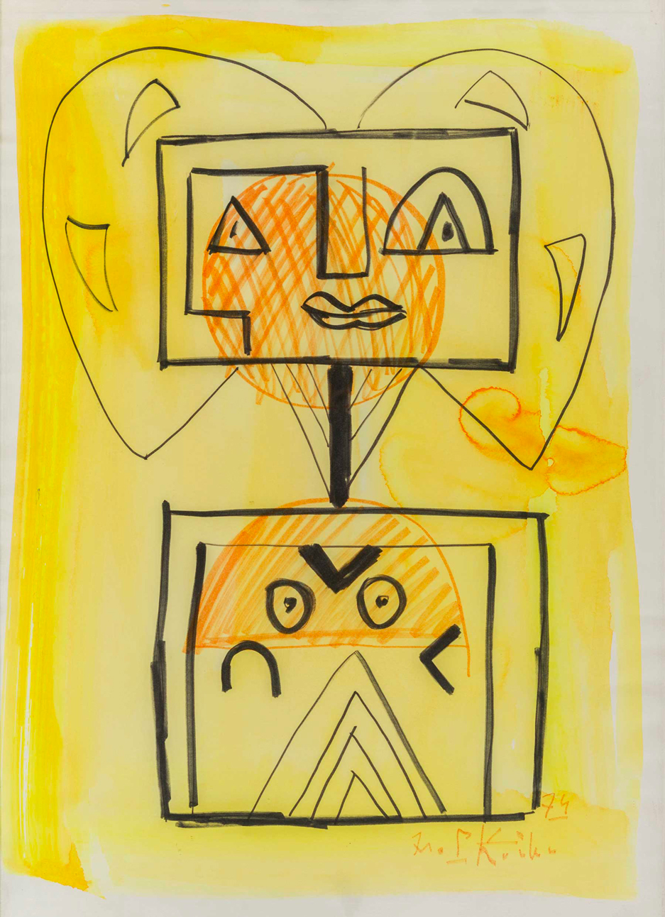 IBRAHIM KODRA(1908 - 2006)Senza titolo1974Tecnica mista, pennarelli e gouache su carta cotone Fabriano70 x 50 cmFirmata e datata in basso a destraPROVENIENZA:Collezione privata, Milano