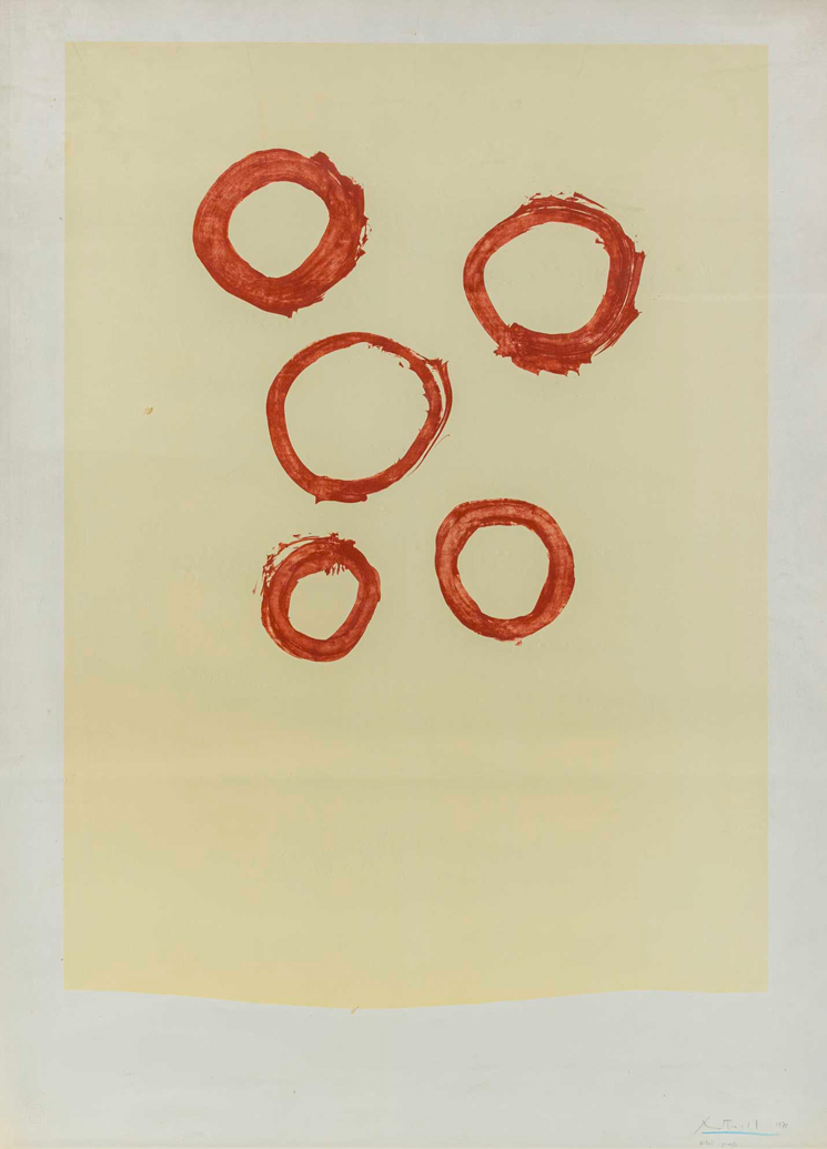 ROBERT MOTHERWELL(1915 - 1991)Five circles1971Litografia a colori su carta BFK Rives, es. a.p., su una tiratura di 80 esemplari in numeri arabi, 5 AP., 20 esemplari in numeri romani e altre prove d'artista non registrate, Edizioni Erker, St. Gallen (timbro a secco)105 x 75 cmFirmata, datata e numerata in basso a destraL'opera era stata ideata in occasione dei Giochi Olimpici di Monaco del 1972PROVENIENZA:Collezione privata, LeccoBIBLIOGRAFIA:S. Terenzio, D. C. Belknap, 'The prints of Robert Motherwell. A Catalogue raisonnÈ 1943-1984', Hdson Hills Press, New York, 1985, p. 182, n. 78 (ill.)S. Engberg, J. Banach, 'Robert Motherwell: The Complete Prints 1940-1991. Catalogue RaisonnÈ', Walker Art Center, Minneapolis, 2003, p. 125, n. 107 (ill.)