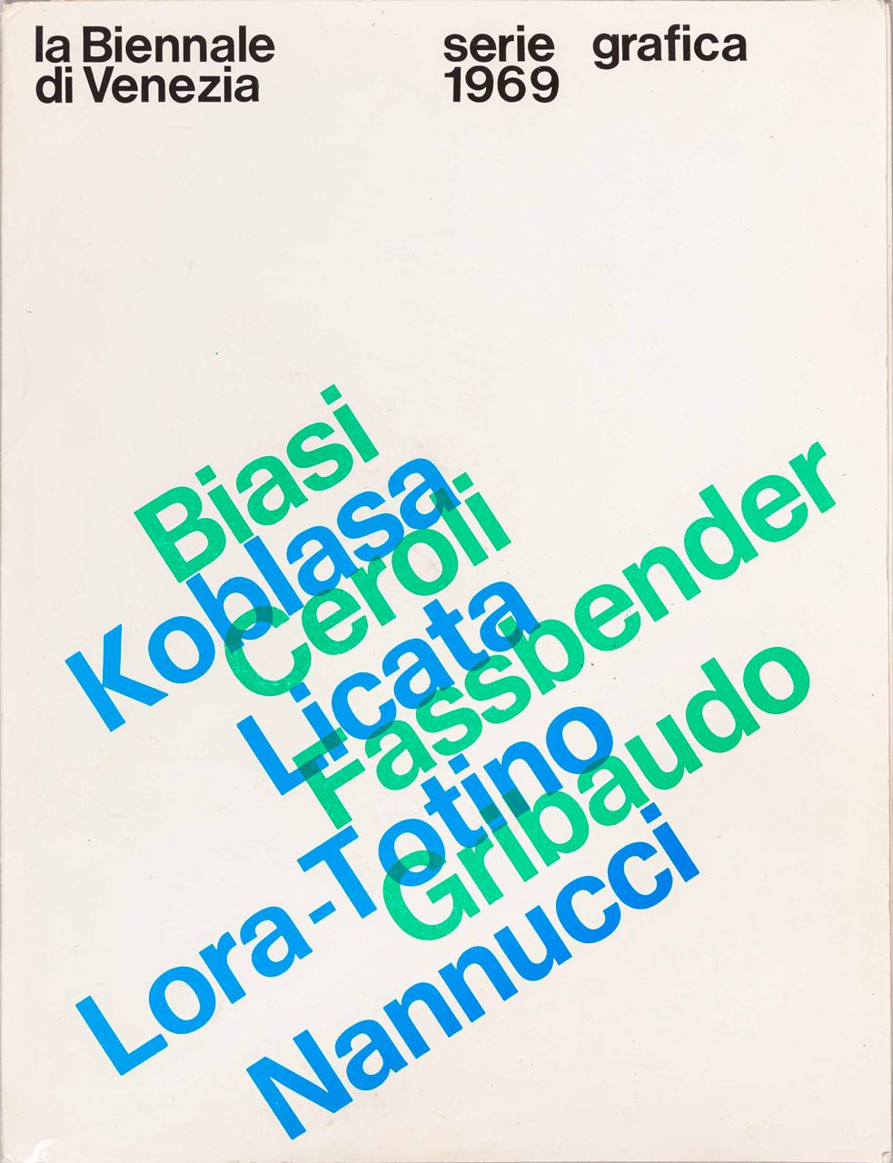 AUTORI VARILa Biennale di Venezia. Serie Grafica 19691969Cartella contenente 8 opere grafiche di Alberto Biasi, Mario Ceroli, Joseph Fassbender, Ezio Gribaudo, Jan Koblasa, Riccardo Licata, Arrigo Lota-Totino, Maurizio Nannucci, es. 94/400, Edizioni Biennale di Venezia, Venezia (timbro a secco su ciascuna opera)40 x 30 cmCiascuna grafica Ë firmata e numerata a matitaPROVENIENZA:Collezione privata, Bergamo