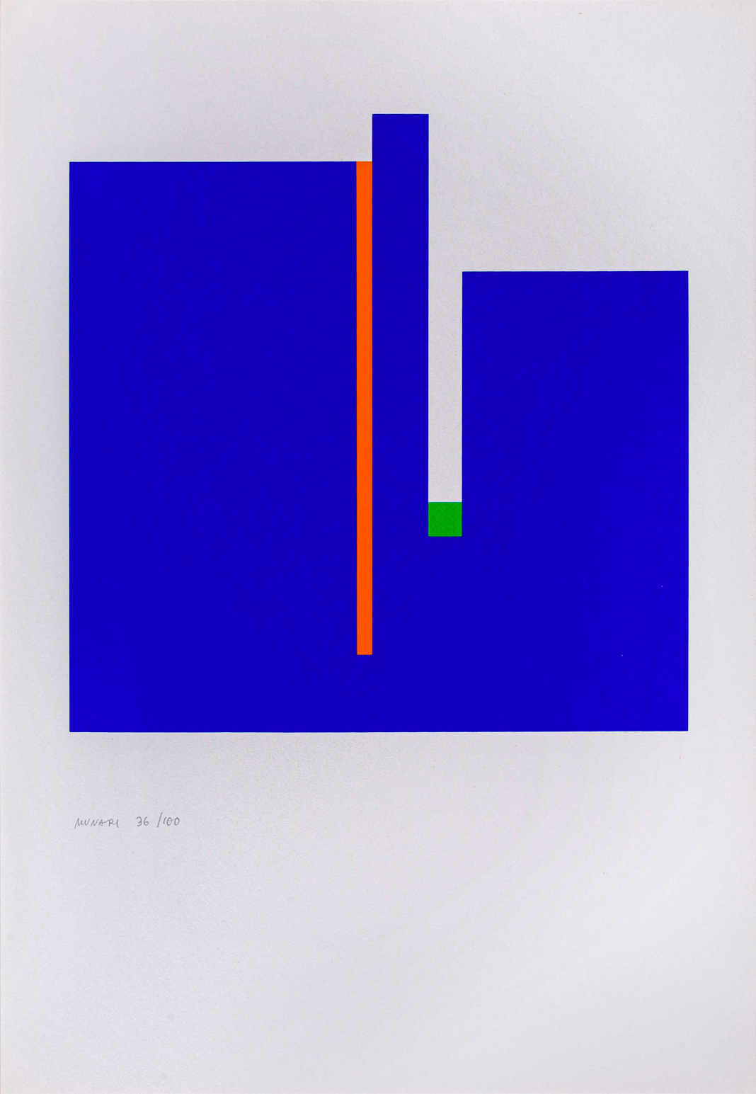 BRUNO MUNARI(1907 - 1998)Positivo Negativo1953 - 1979Serigrafia, es. 36/100 su una tiratura di 100 esemplari in numeri arabi e 30 in numeri romani, Edizioni Centro RS, Como. L'opera era parte della cartella 'Bruno Munari. 10 opere 1930 - 1970' contenente 9 serigrafie e una scultura da viaggio.48 x 33 cmFirmata e numerata a matita in basso a sinistra