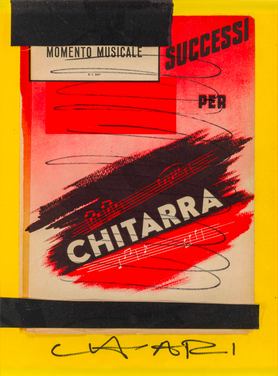 GIUSEPPE CHIARI(1926 - 2007)Successi per chitarraTecnica mista e collage su cartoncino applicato su cartone telato40 x 30 cmFirmata in basso al centroOpera accompagnata da autentica su fotografia firmata dall'artistaPROVENIENZA:Collezione privata, Pavia