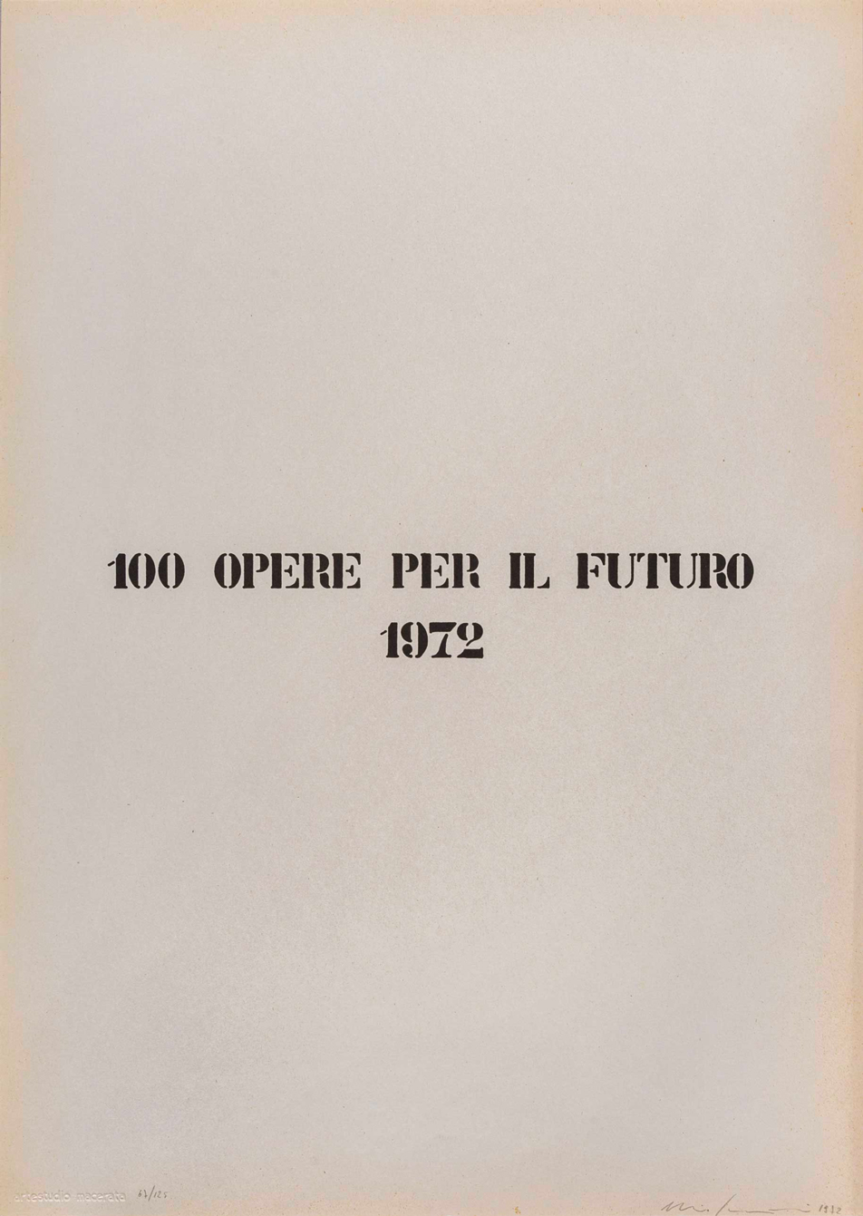 ALBINO SIMONCINI100 opere per il futuro1972Cartella contenente 100 litografie, es. 67/125, Edizioni Arte Studio, Macerata48 x 34 cmFirma, data e numerazione nel frontespizioPROVENIENZA:Collezione privata, Pavia