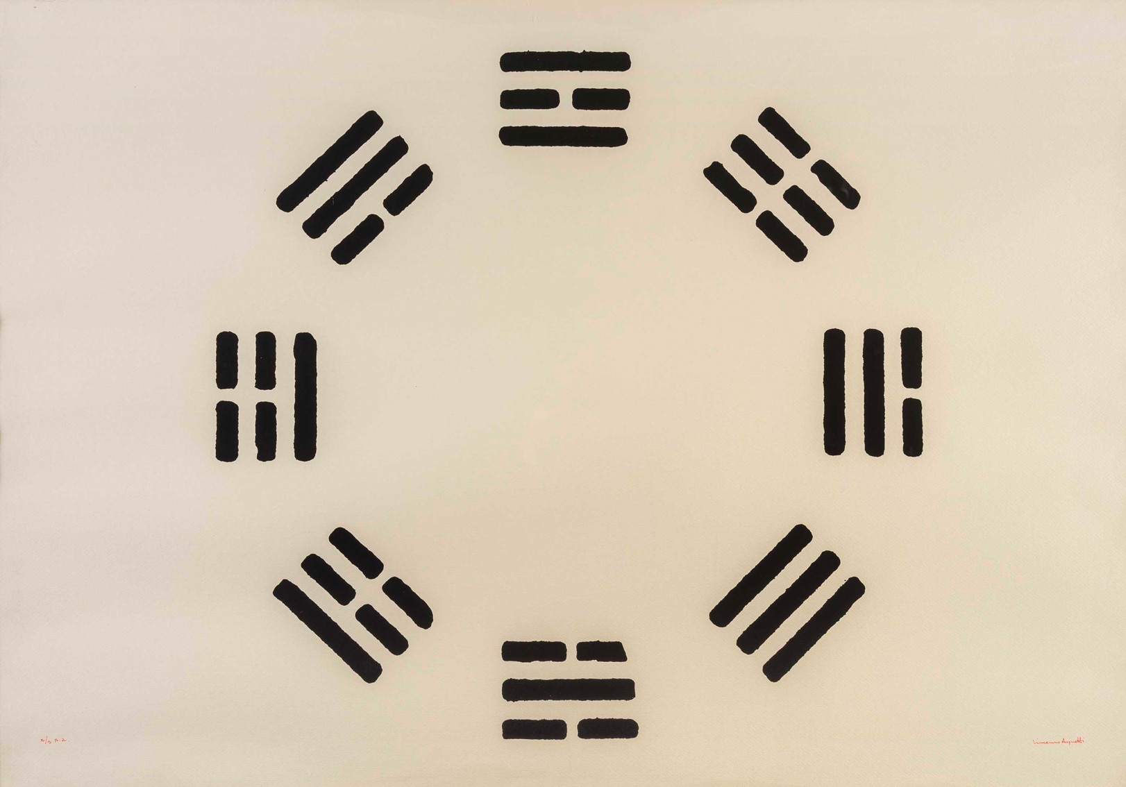 VINCENZO AGNETTI(1926 - 1981)I Ching (Mutamenti)1978Serigrafia su cartoncino, es. n/s p.a.70 x 100 cmFirmata in basso a destra e numerata in basso a sinistraL'opera Ë stata realizzata in occasione della mostra alla Galleria d'Arte Moderna, Castello di PortofinoPROVENIENZA:Collezione privata, Milano