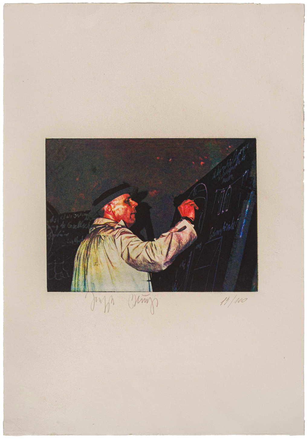 JOSEPH BEUYS(1921 - 1986)Senza titolo1982Acquaforte e fotoincisione su carta, es. 19/100, Piccolo Museo Edizioni, Lecce17,1 x 23,6 cm (lastra)48,6 x 33,7 cm (foglio)Firmata a matita in basso a sinistra, numerata in basso a destraOpera accompagnata da certificato di autenticit‡ rilasciato da F.B. Arte, Ostellato (FE)PROVENIENZA:F.B. Arte, Ostellato (FE)Collezione privata, PaviaBIBLIOGRAFIA:J. Schellmann, 'Joseph Beuys. Die Multiples 1965-1968', Edizioni Schirmer/Mosel Verlag, Monaco, 2006, p. 346, n. 452 (ill.)