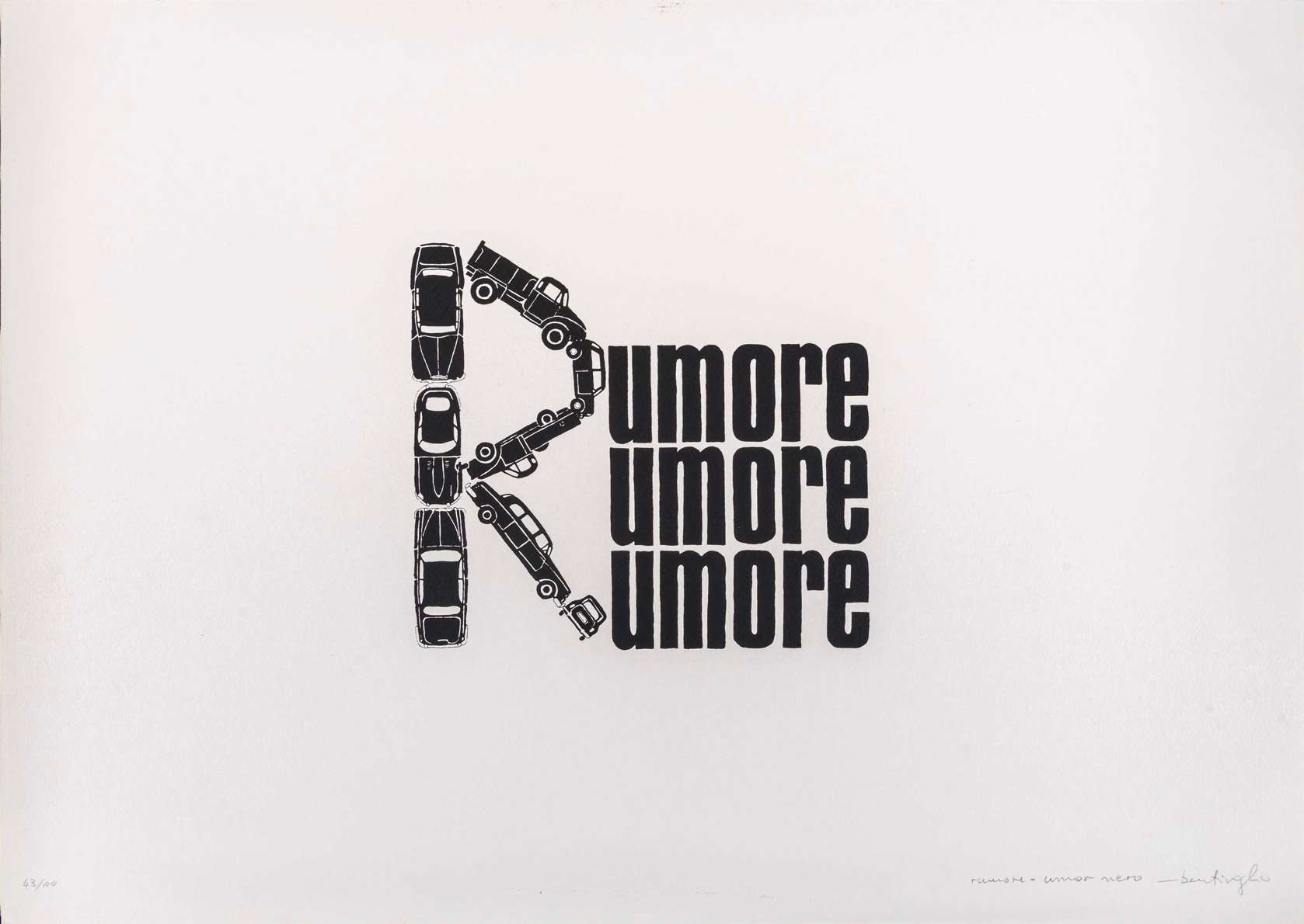 MIRELLA BENTIVOGLIO(1922 - 2017)Rumore (Umore nero)1975Serigrafia, es. 43/100, Edizioni Libreria delle Donne, Milano49,5 x 69,5 cmTitolata e firmata a matita in basso a destra, numerata in basso a sinistraL'opera Ë stata realizzata in occasione dell'apertura della Libreria delle Donne ed era parte della 'Cartella delle Artiste' contenente grafiche di C. Accardi, M. Bentivoglio, V. Berardinone, T. Binga, N. Carrabba, Dadamaino, A. del Ponte, G. Varisco, N. VigoPROVENIENZA:Collezione privata, Milano