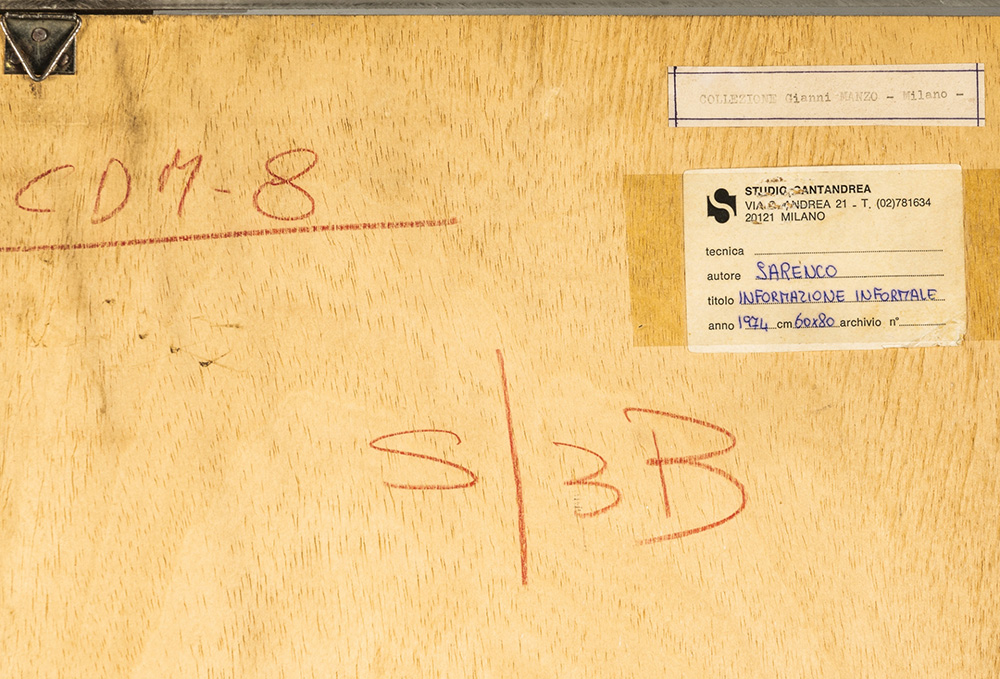 Note Etichetta Studio Brescia Sarenco, sul retro
