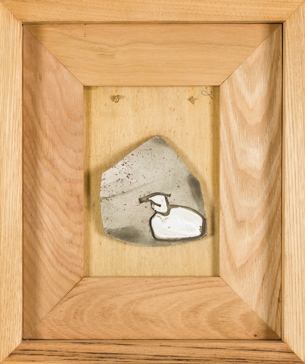 Scultura in ceramica smaltata applicata su tavola